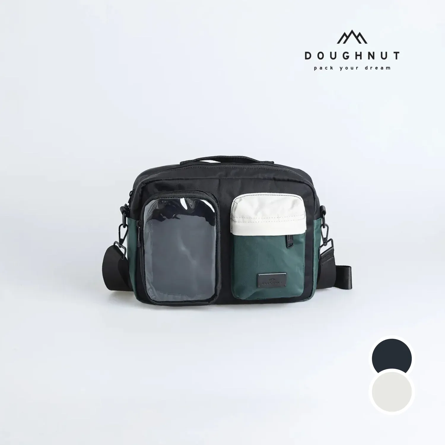 コンパクトながら機能性に優れたショルダーバッグです。フロントのクリアウィンドウで自分好みにカスタマイズできる点が特徴で、ファッション性も高いアイテム。内部には仕切りポケットがあり、小物の整理がしやすい設計になっています。軽量で撥水性のある素材を使用しており、日常使いからイベントシーンまで幅広く活躍します。